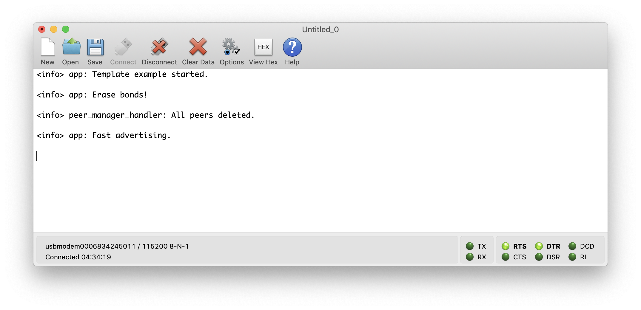 You may not see any output since the program probably started before you connected. To reset the development board, we can simply run the following command from the Terminal: