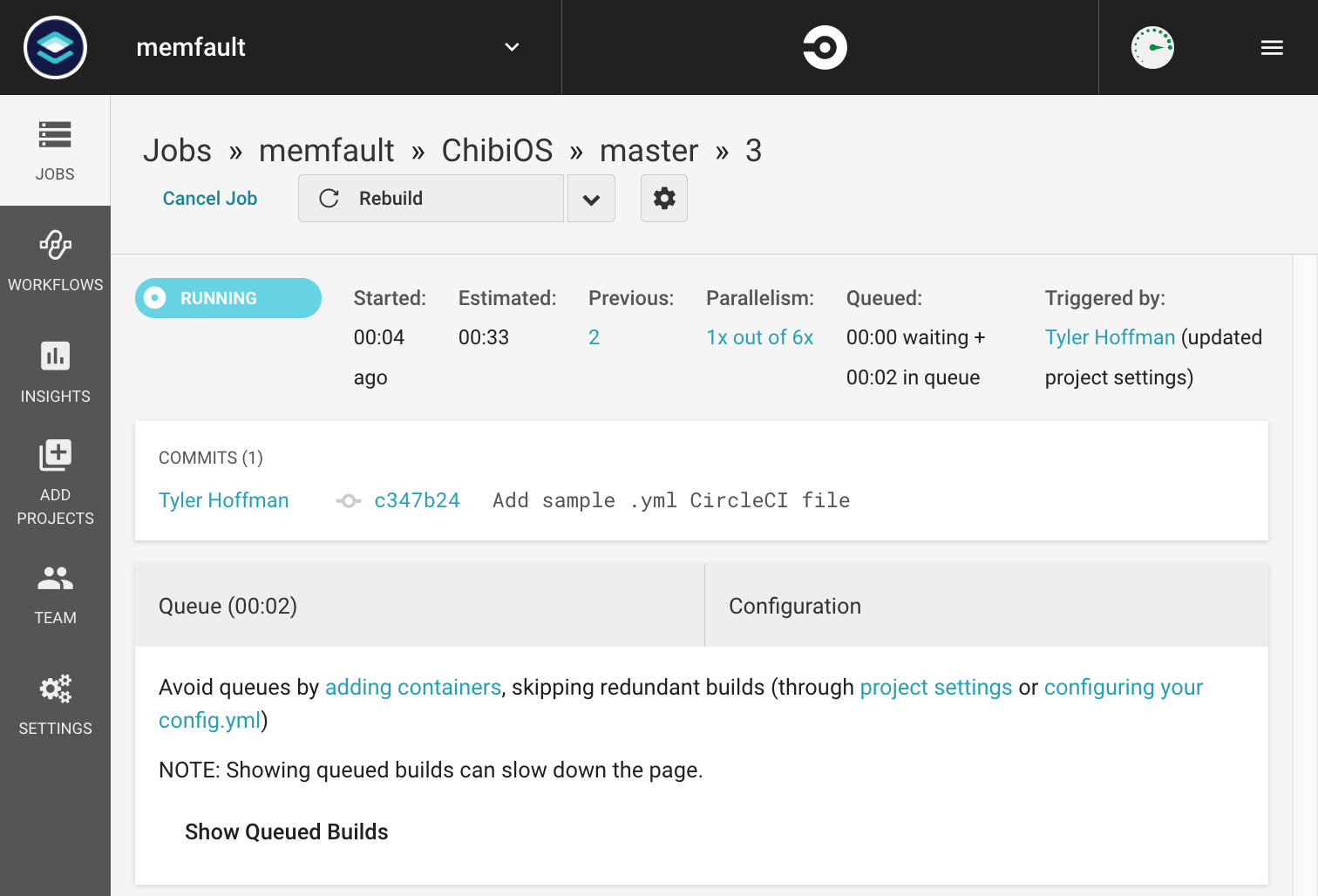 Now head to https://circleci.com and observe that a new job has started: