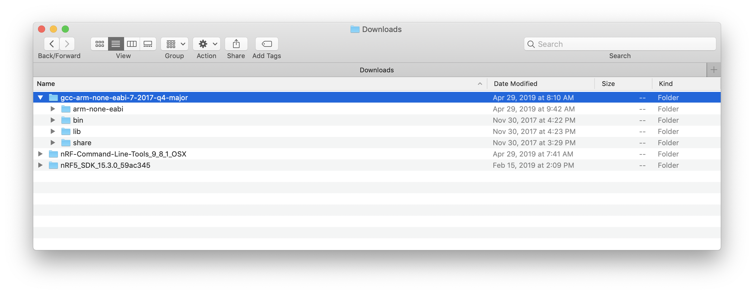 Installation of the nRF5 SDK is straightforward. All you need to do is download the SDK tarball from Nordic’s website and then extract it.